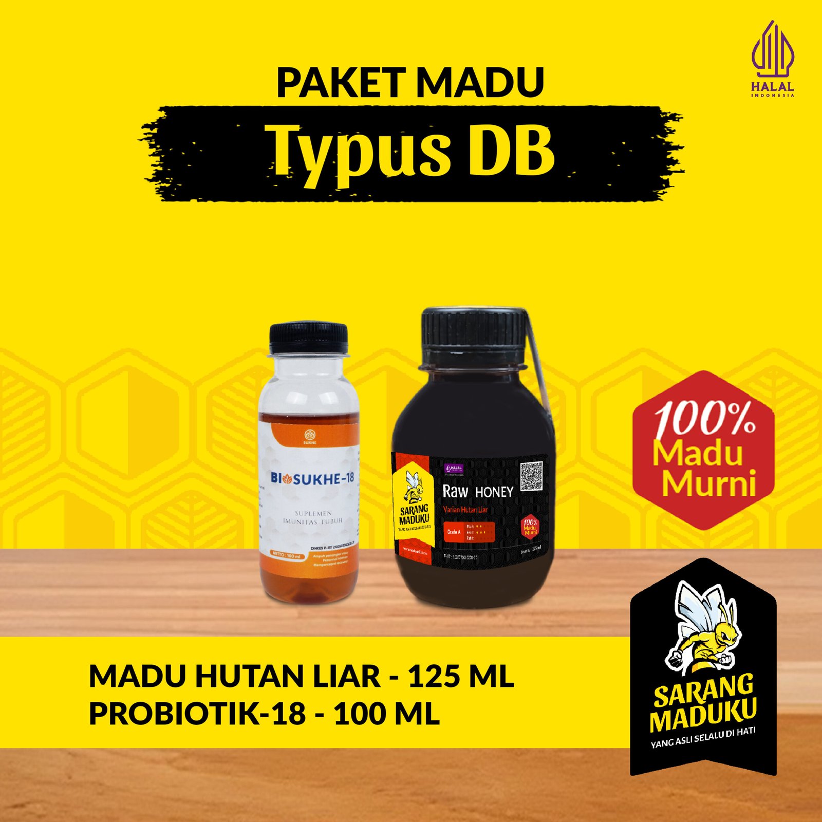 Sarang Maduku Madu Hutan Liar 125ML dan Biosukhe 18 Madu Typus Demam Berdarah DB Asli Murni Raw Honey